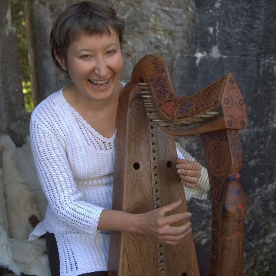 Actually, learning to make harps was a pure necessity for me! I never intended to become a harp maker. But as a scholar of Irish mythology and Medieval literature, I always wanted to play the Medieval version of the Irish harp, which wasn’t easy to come by back then. So when I first heard the early Irish harp (aka cláirseach) in a concert and got a chance to try my own hands on it, both with Siobhán Armostrong at Galway Early Music Festival, I instantly realised the old Irish wire strung harp was my destiny. My passion for the cláirseach flared up so brightly that I put my academic career on a backburner and decided to dedicate a year of my life to learning to play it with Siobhán, while renting a wire strung harp from the Historical Harp Society of Ireland. And since my budget prohibited me from commissioning my very own instrument to the specifications I wanted, I also decided to take an apprenticeship in harp making with a very generous, Galway based luthier extraordinaire Paul Doyle, with a goal to eventually make a Trinity college harp for myself. In the end, that initial one year stretched to the traditional 7 years of apprenticeship and harp classes, and to another 8 years of researching, making and repairing harps in my own workshop in Connemara.