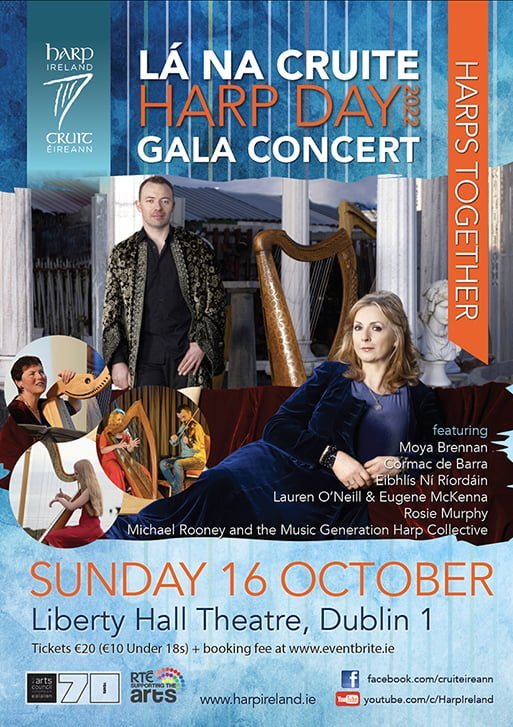 Join us at our Gala Concert featuring Moya Brennan, Cormac De Barra, Eibhlís Ní Ríordáin, Lauren O’Neill, Eugene McKenna, Rosie Murphy, Michael Rooney and the Music Generation Harp Collective to celebrate Lá na Cruite│Harp Day 2022.
