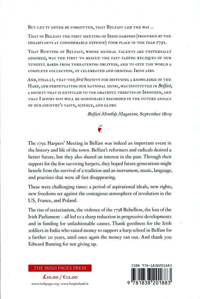 Hot off the press – GATHERINGS OF IRISH HARPERS 1780-1840 by David Byers. Commissioned by Harp Ireland and Reclaim the Enlightenment for the Harps Alive festival. Book launch (and Festival launch) on Friday 15 July at 6pm in the Linen Hall Library. Free admission. Book published by Irish Pages Press.