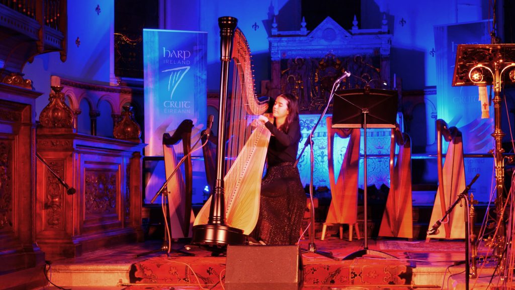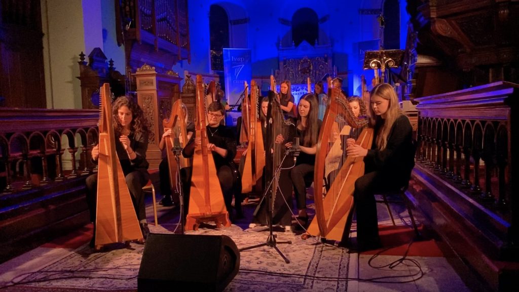 The Harps Alive Ensemble with TU Dublin Harp Ensemble performed a new Cruit Éireann commissioned piece by Gráinne Meyer.