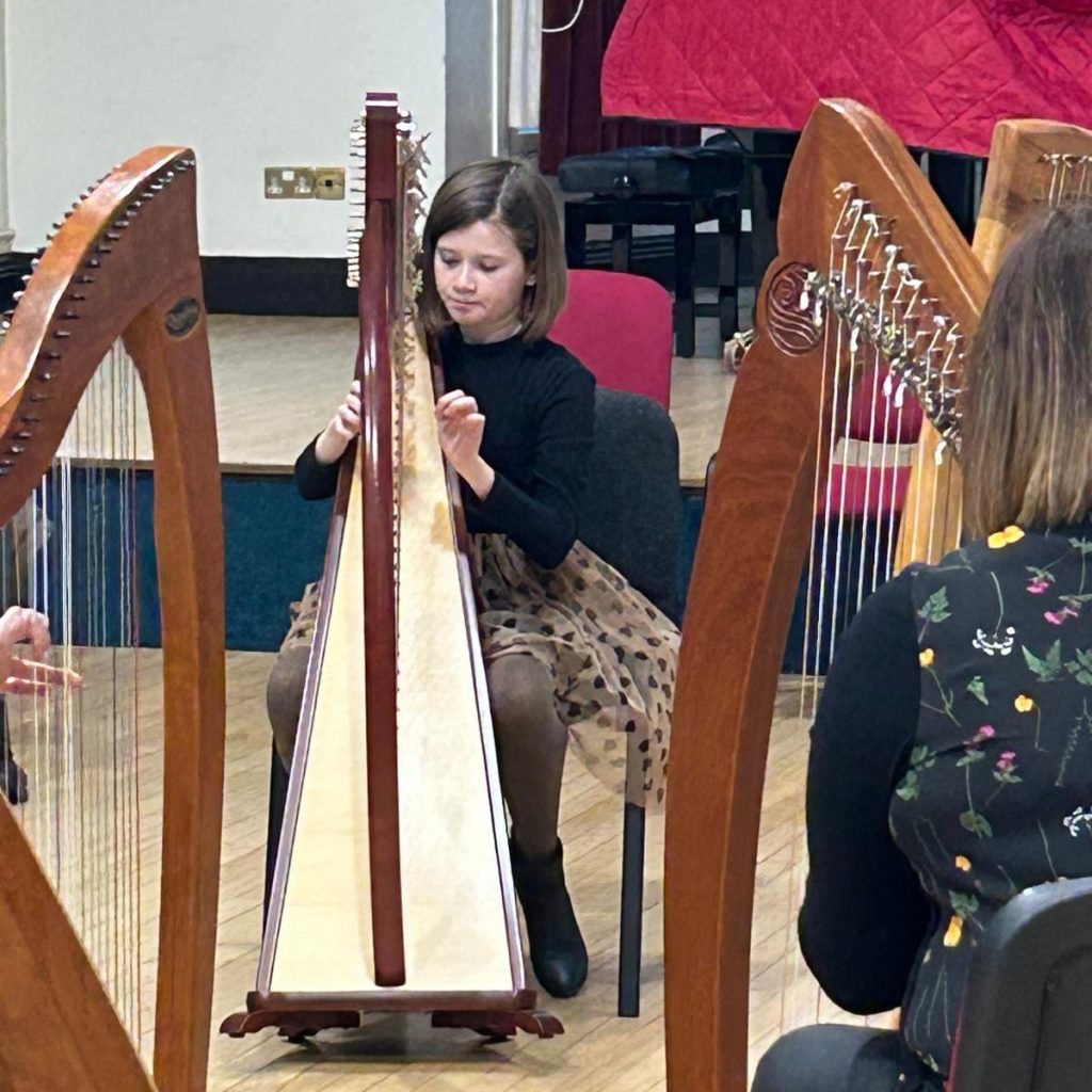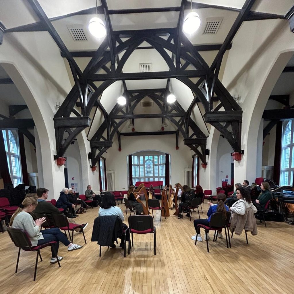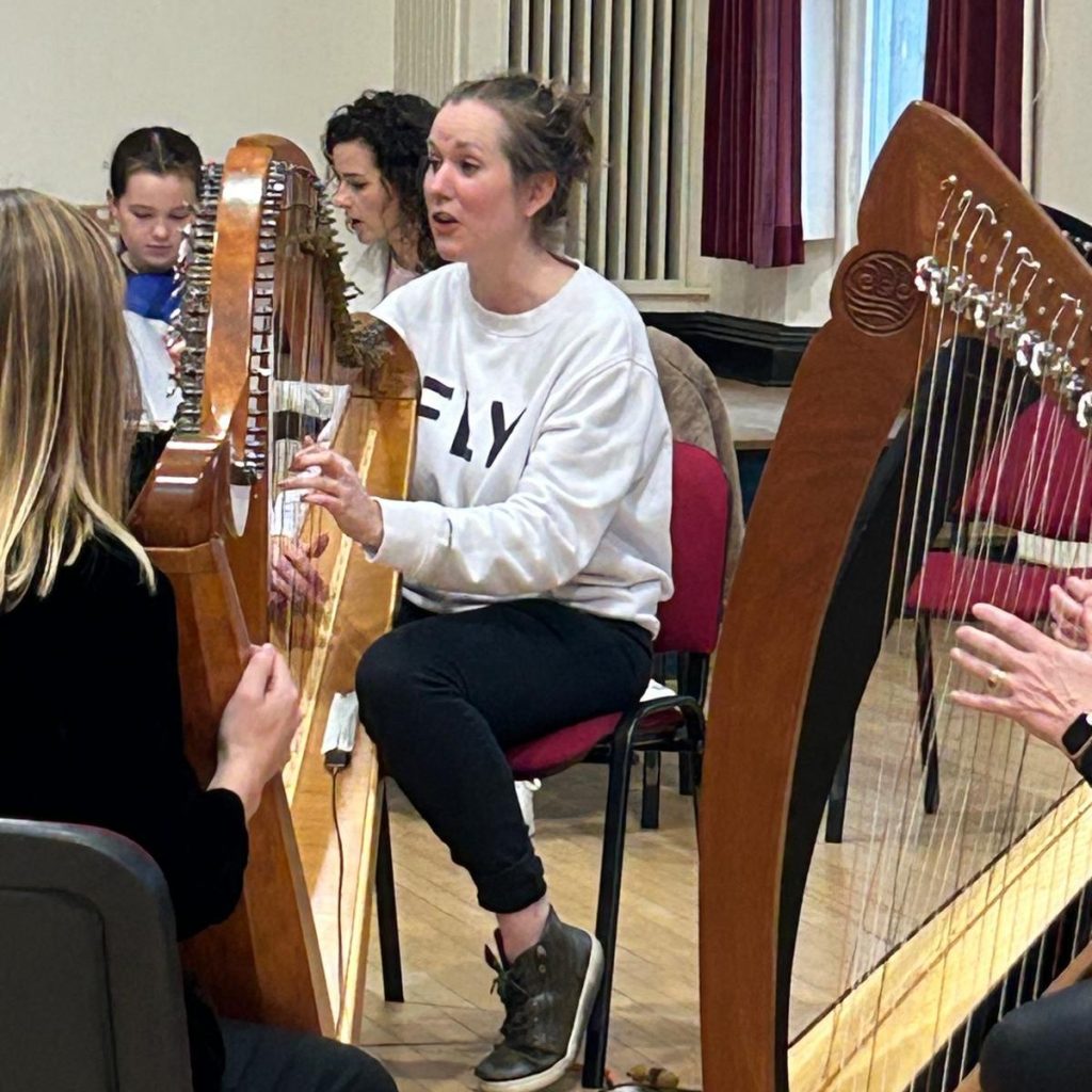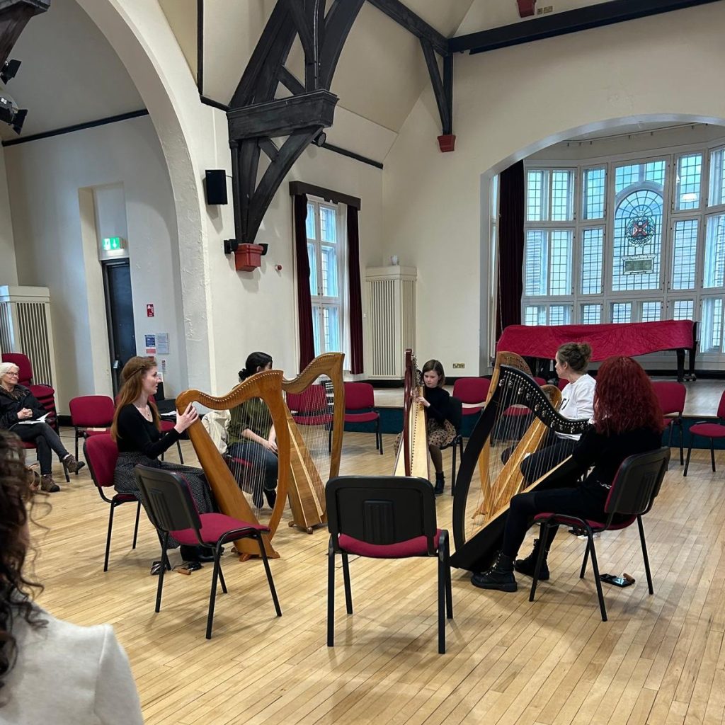 The “Open String” session at Queen’s University Belfast brought together harpers and music lovers alike. Led by talented musicians Amy McAllister, Úna Monaghan, Saoirse Van Merkon, and Gráinne Meyer, this informal gathering was a beautiful blend of shared tunes, conversation, and community. Harpers exchanged favorite pieces, connecting through music, while listeners enjoyed the vibrant atmosphere. It was a wonderful celebration of the harp and its tradition, bringing Belfast’s harping community closer together for an unforgettable day!