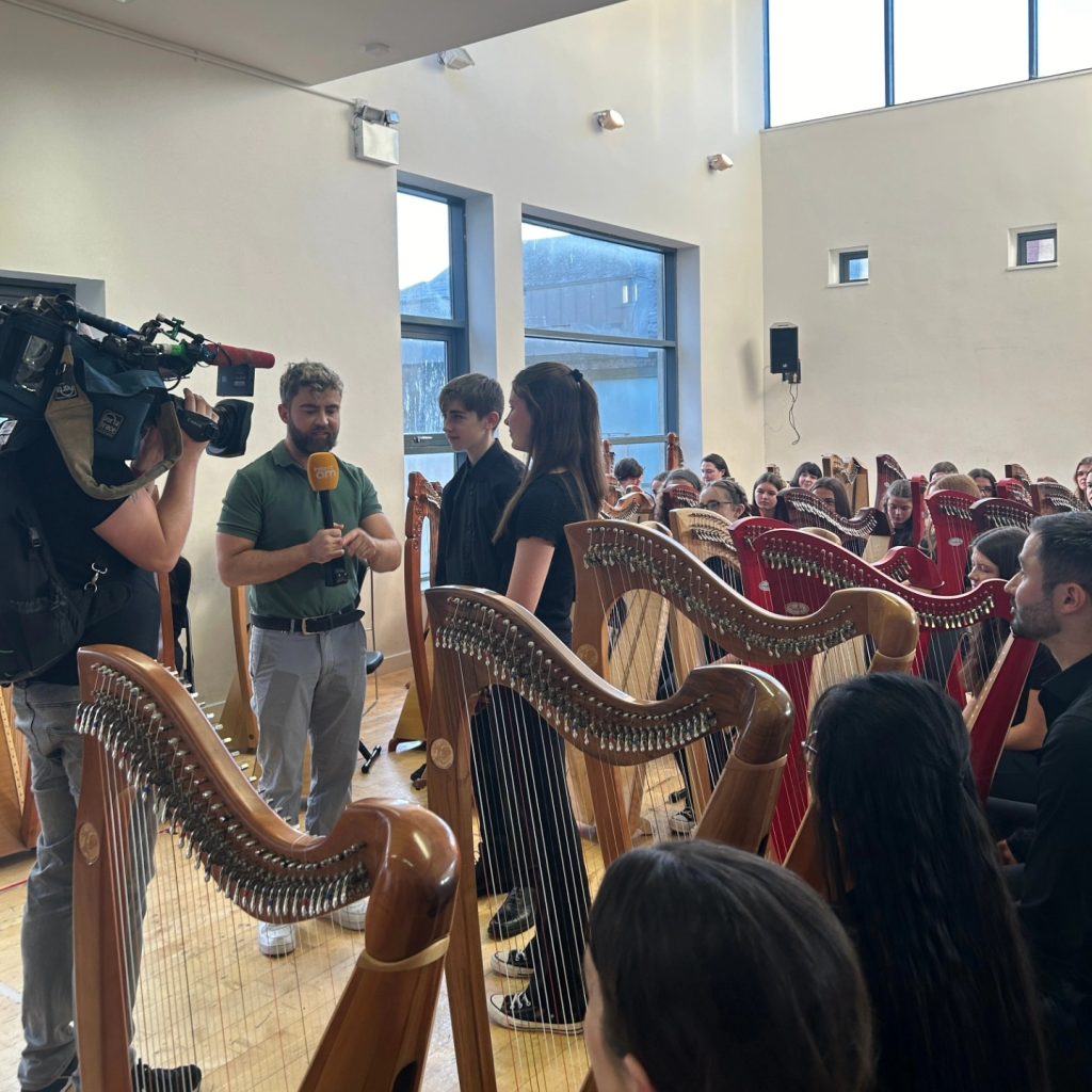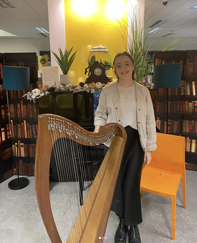 Harp students of the Royal Irish Academy of Music, under the guidance of Áine Ní Dhubhghaill, presented a pop-up performance in RIAM’s foyer.