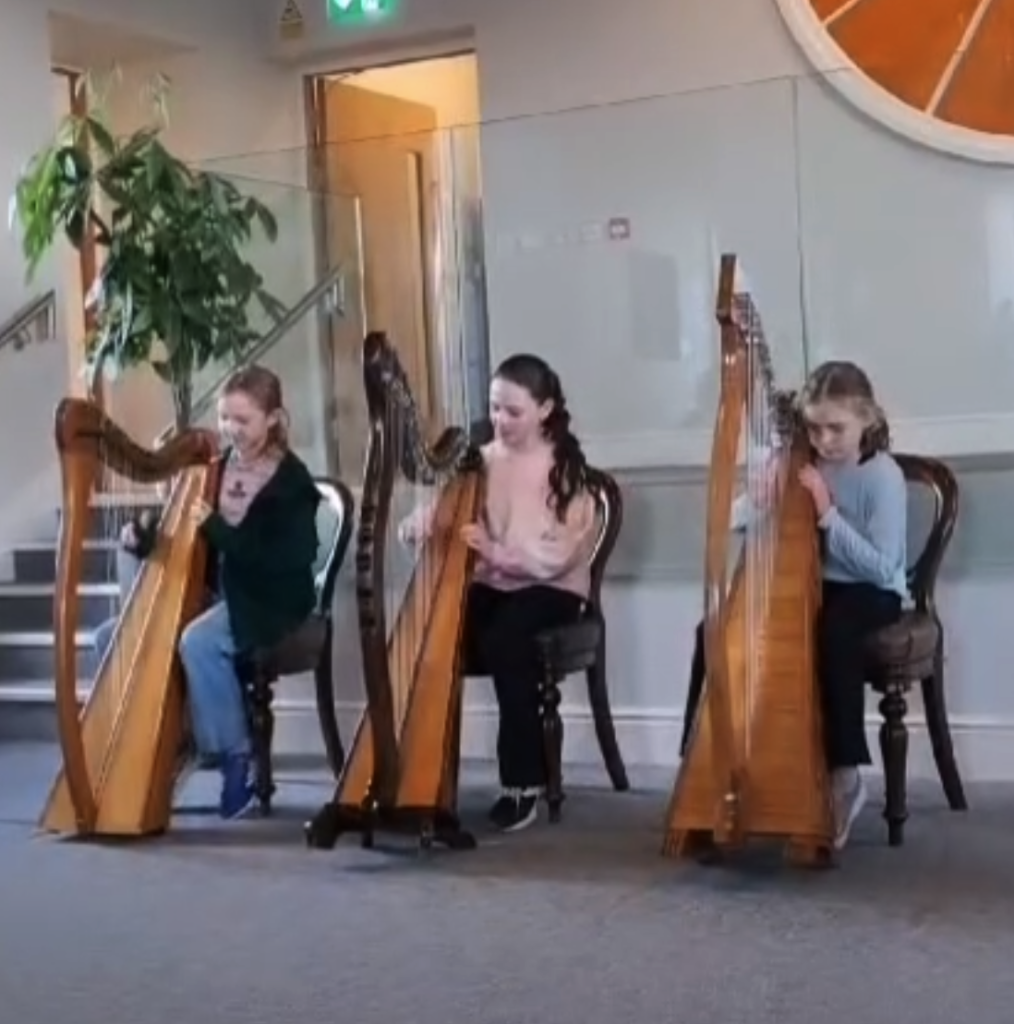 Harpist Ruth O’Hara & students presented an afternoon of harp music. A programme included Irish trad, classical, film & pop music.