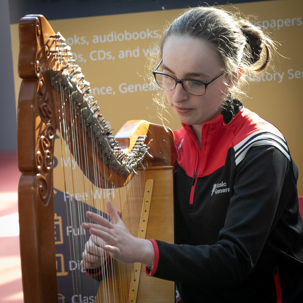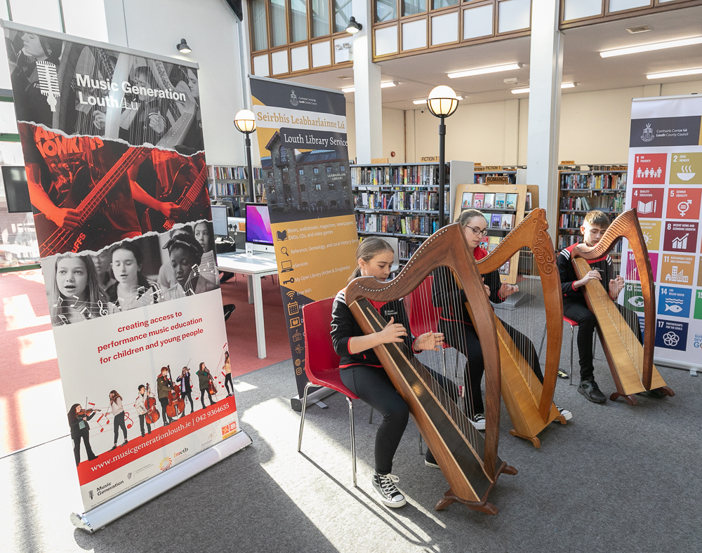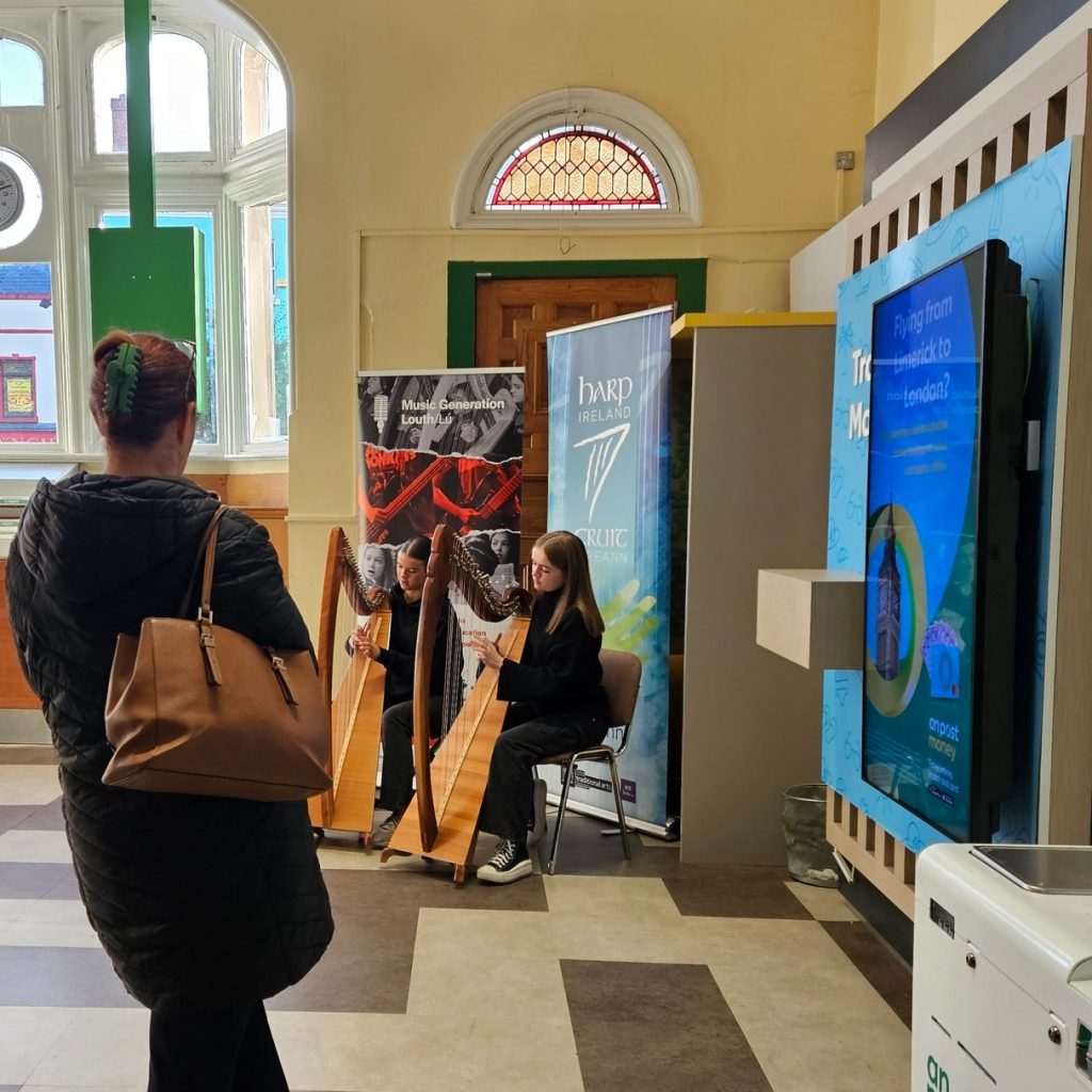 Harp Day Louth at Dundalk Post Office, Dundalk Credit Union, Dundalk Library, Marshes Shopping Centre and Highlanes Gallery Drogheda