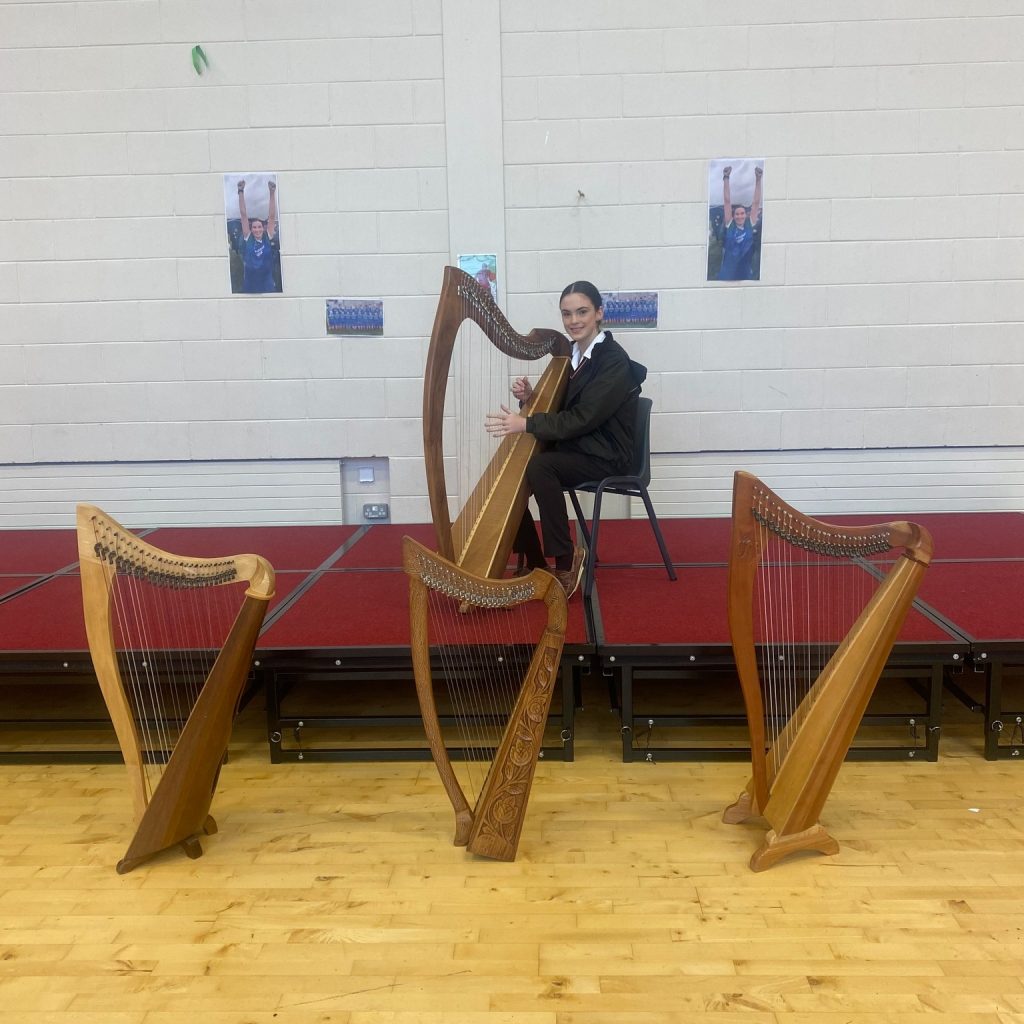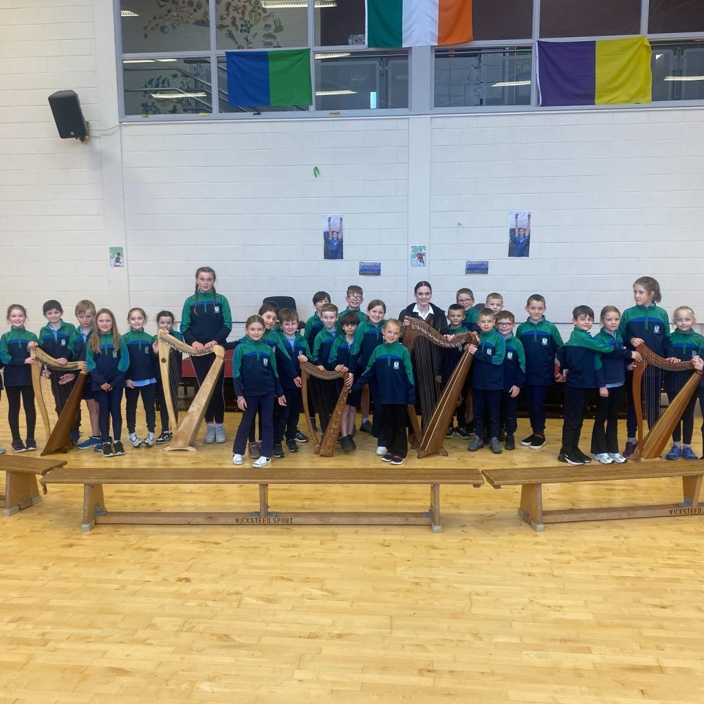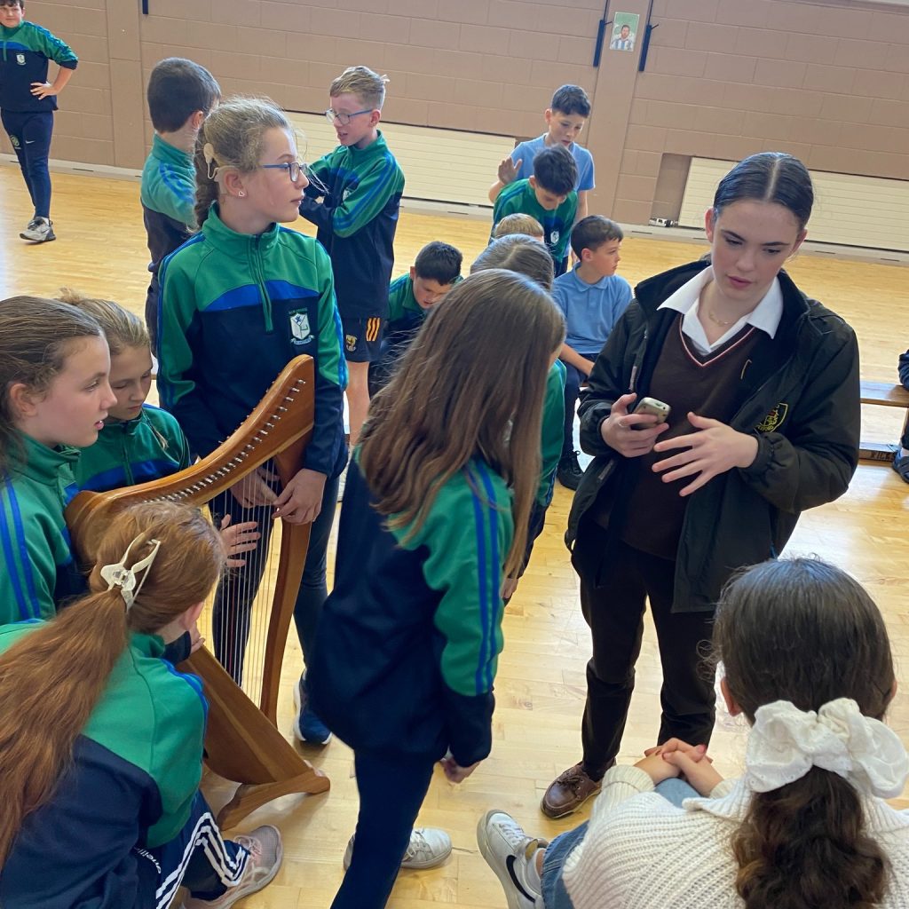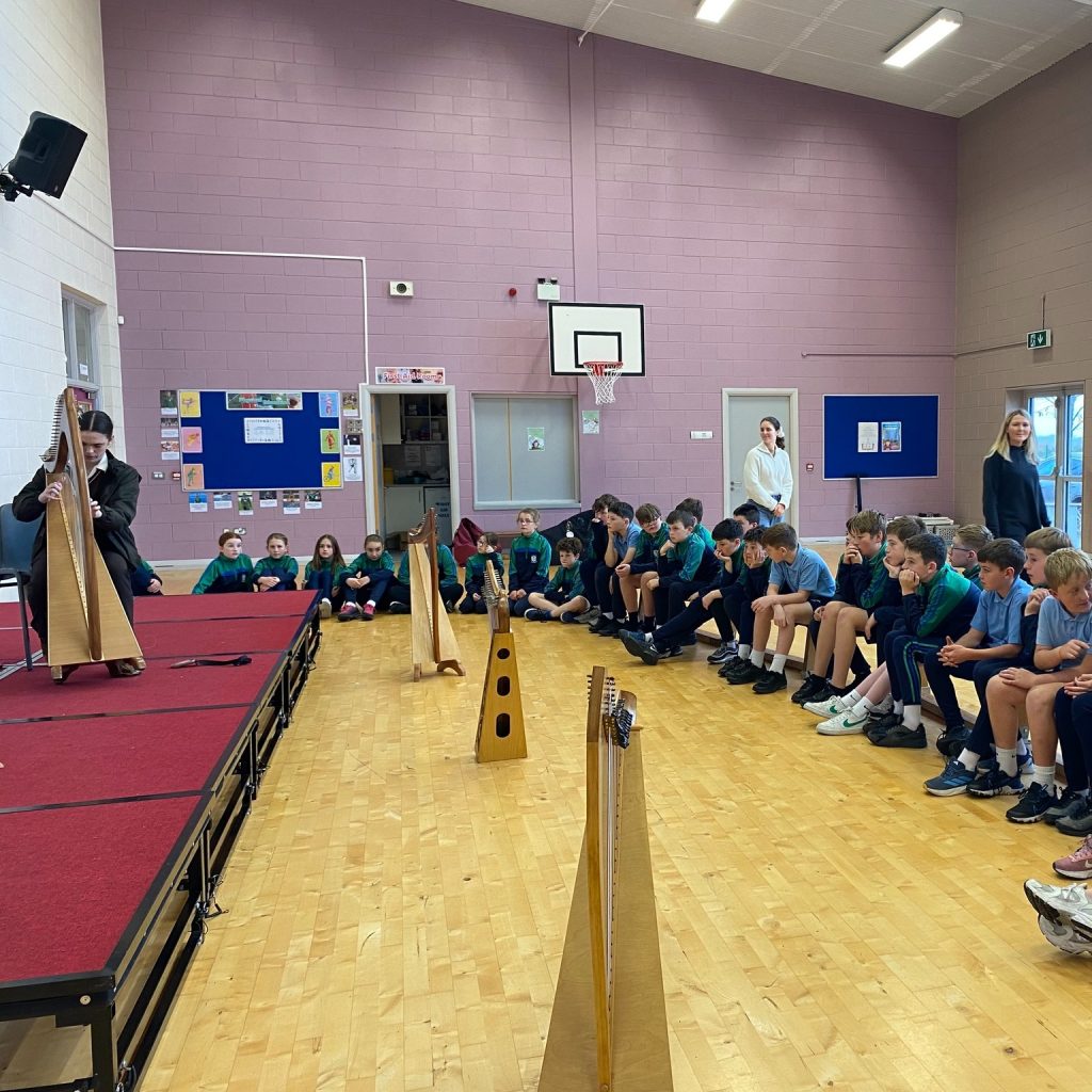 Barntown National School hosted a “Hands on Harps” session led by emerging harper Úna Walsh. This interactive workshop gave students a unique opportunity to experience the harp up close, sparking interest in Ireland’s national instrument among young musicians.