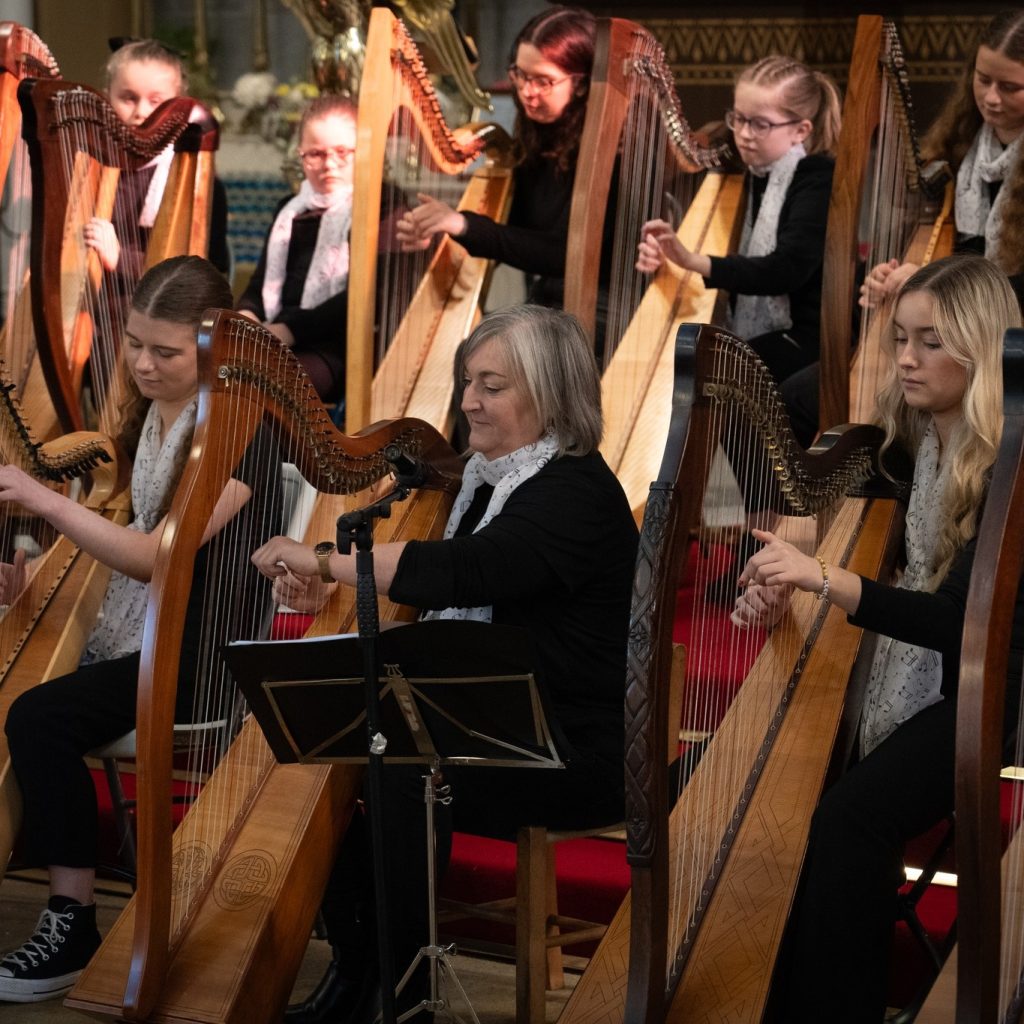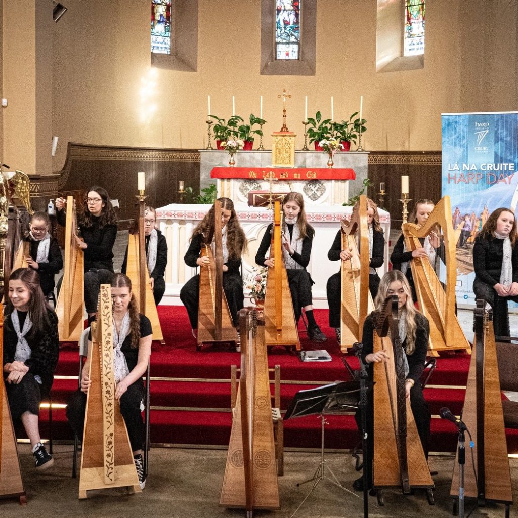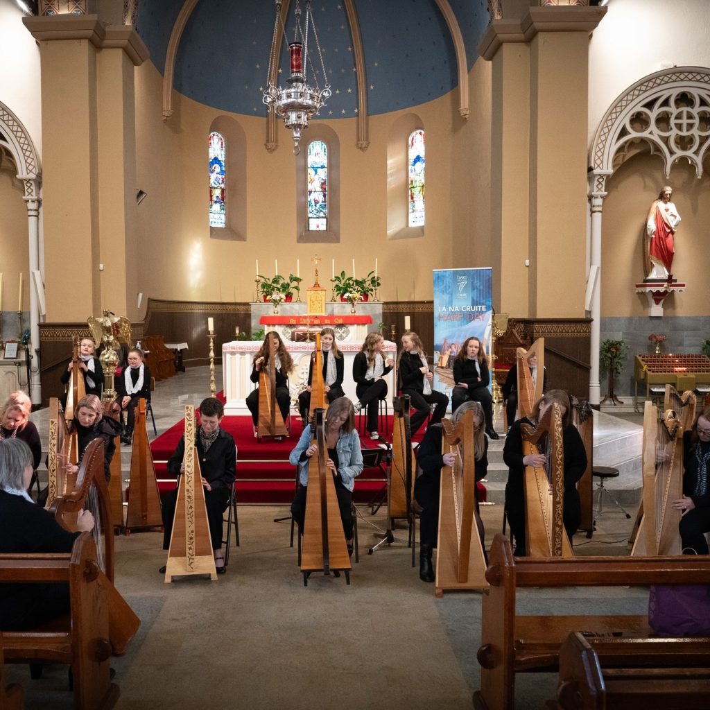 The lunchtime concert at St. Michael’s Church, Gorey, was a wonderful showcase of local talent in celebration of Harp Day! The Wexford Harp Ensemble, directed by Aileen Kennedy, filled the space with beautiful harmonies, joined by the Mothers and Others and Dads and Lads Ensembles. The event highlighted the warmth and dedication of Wexford’s harping community, creating an unforgettable afternoon for performers and listeners alike. Thank you to everyone who joined us to support and celebrate the harp!