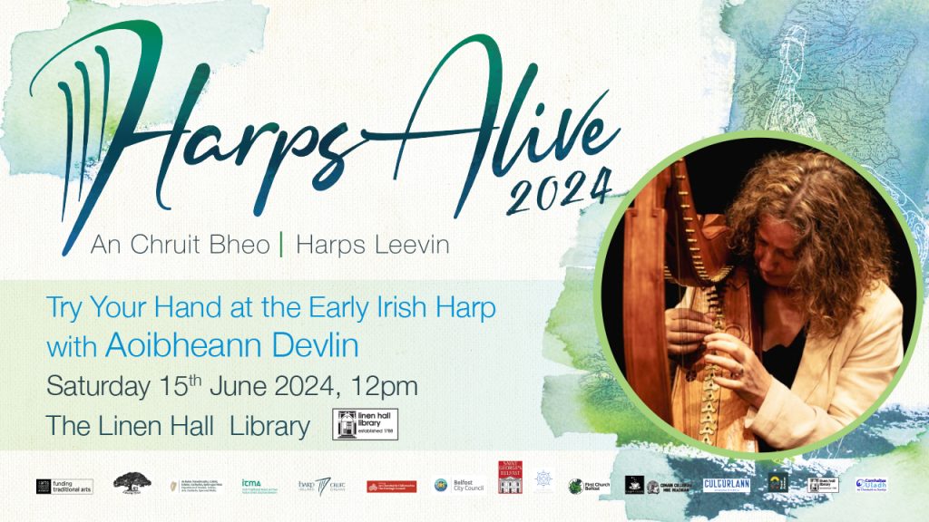 Would you like to learn more about, and even get your hands on a copy of an ancient Irish harp – and be taught a tune? Meet the Historical Harp Society of Ireland, hear this rare instrument played, have your questions answered, and – if you sign up early enough – take one of the few places in a hands-on beginners’ workshop. Harps copied from medieval to 18th-century originals will be available on a first-come, first-served basis.