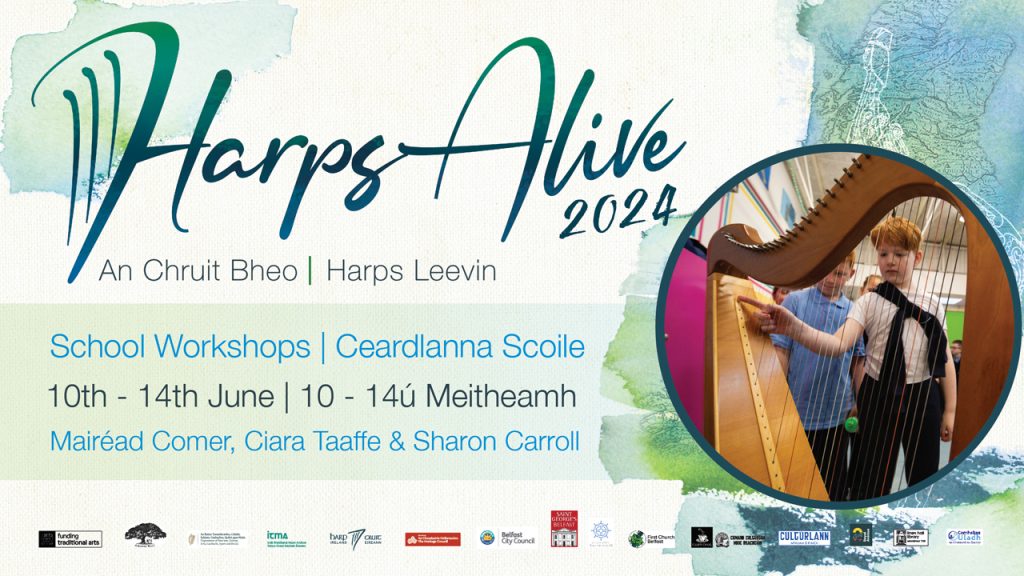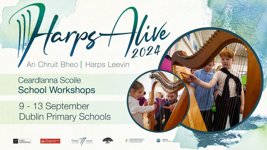 Harpers visit local primary schools to perform and share the harp story; what it’s made from, how many strings it has, its history in ancient Ireland and its importance as our national symbol.