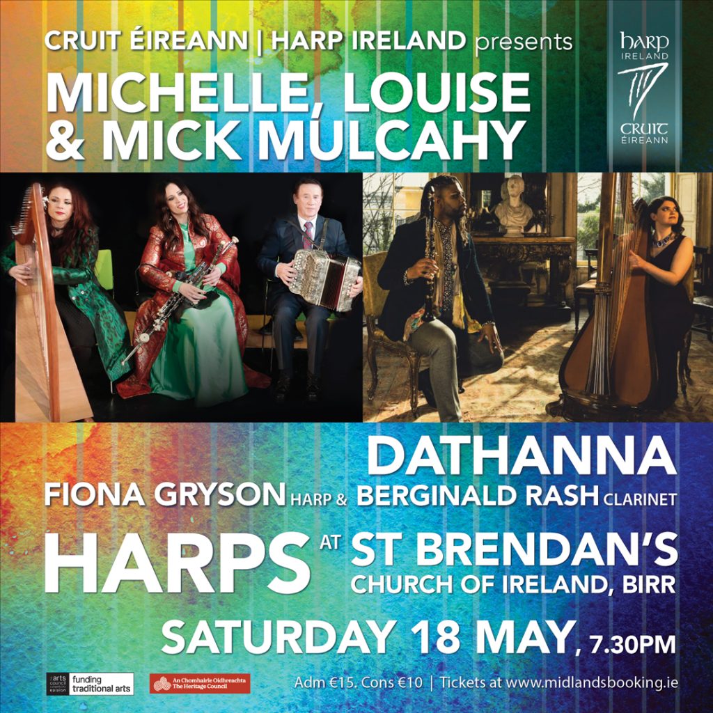 Tickets for Harps at St. Brendan’s Church of Ireland, Birr, on Saturday 18th May at 7.30pm are available here.