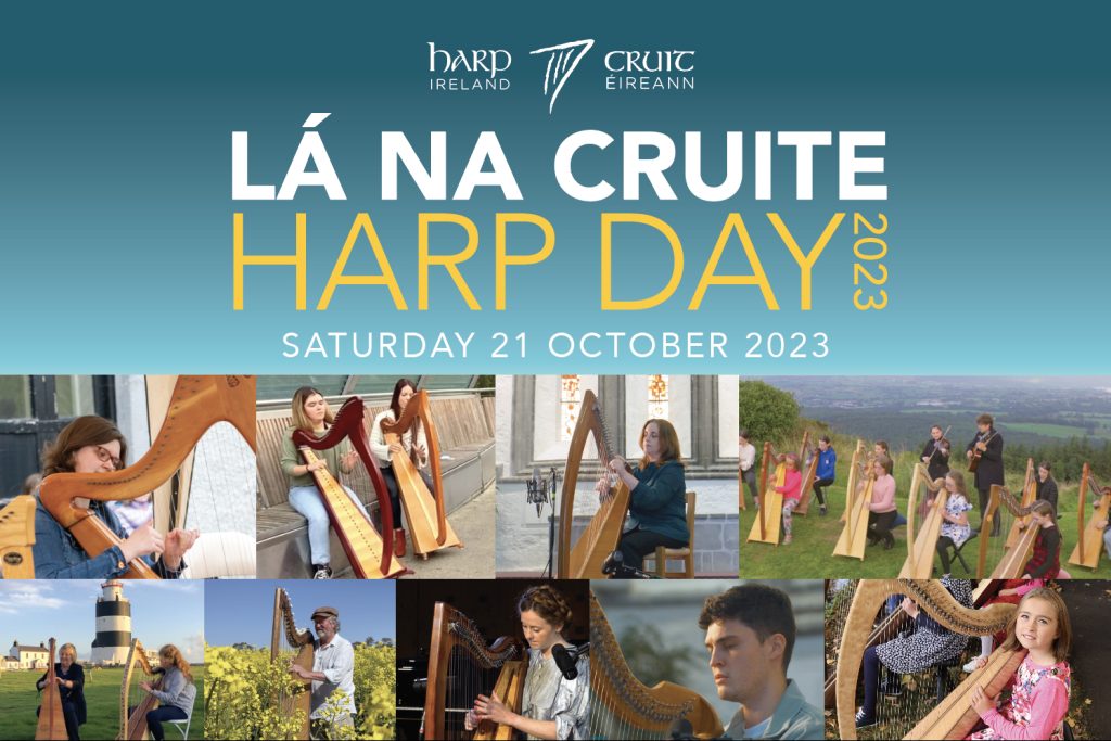 Lá na Cruite | Harp Day takes place this year on Saturday 21st October 2023 with performances, workshops, talks and taster sessions planned across Ireland and beyond, involving as many people as possible in a celebration of  our 1000-year old harping tradition. Now in its seventh year and featuring live and online harping events, we invite harpers everywhere to join with us in marking this special day, where harps will resound in all corners of the world.