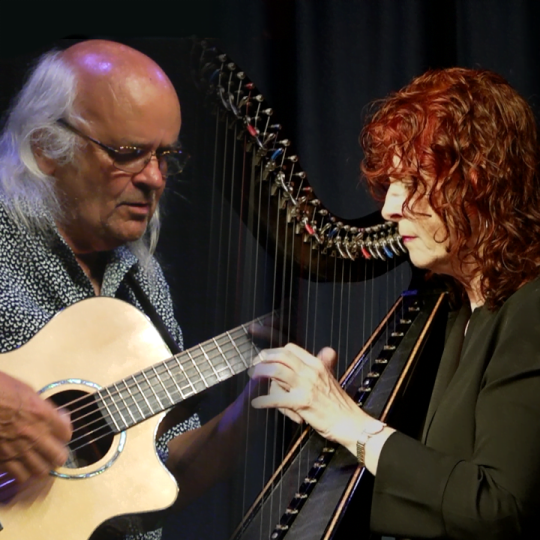 The magnificent harp/guitar duo featuring harper Máire Ní Chathasaigh and guitarist/mandolinist Chris Newman tune in from Otley Courthouse Arts Centre, Otley, West Yorkshire, UK.