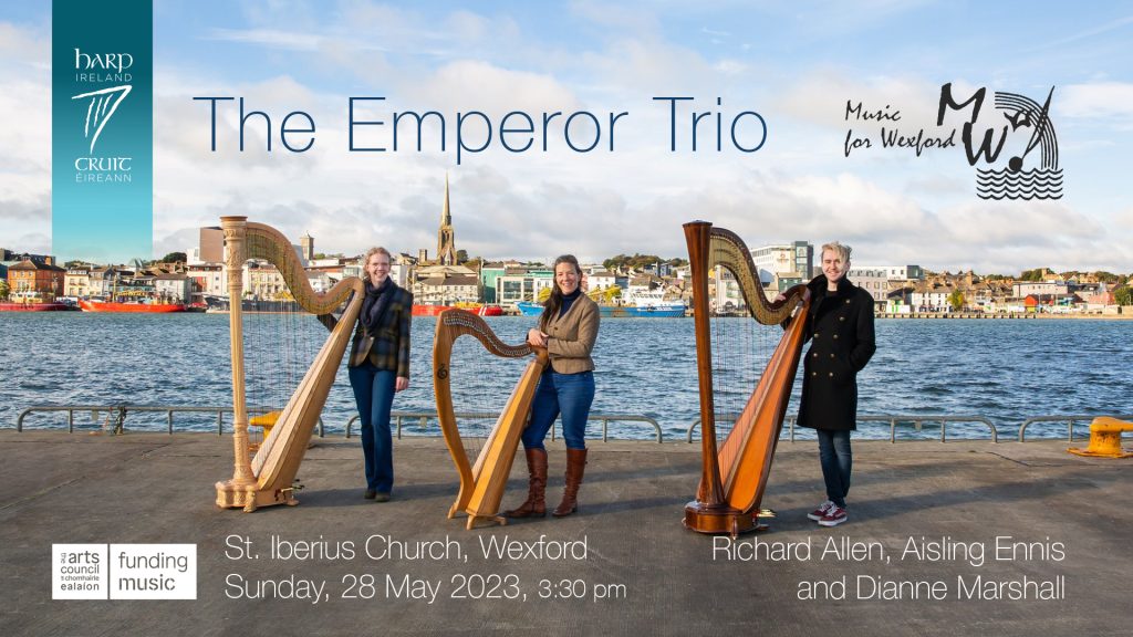 The concert features the World Premiere of a Music for Wexford commissioned work for 3 harps by Dr Anne-Marie O’Farrell.