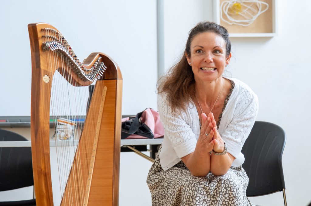Katy hosts a popular monthly harp session for adults of all ages and abilities to meet, learn and play music together. She is delighted to see so many people enjoying and benefiting from