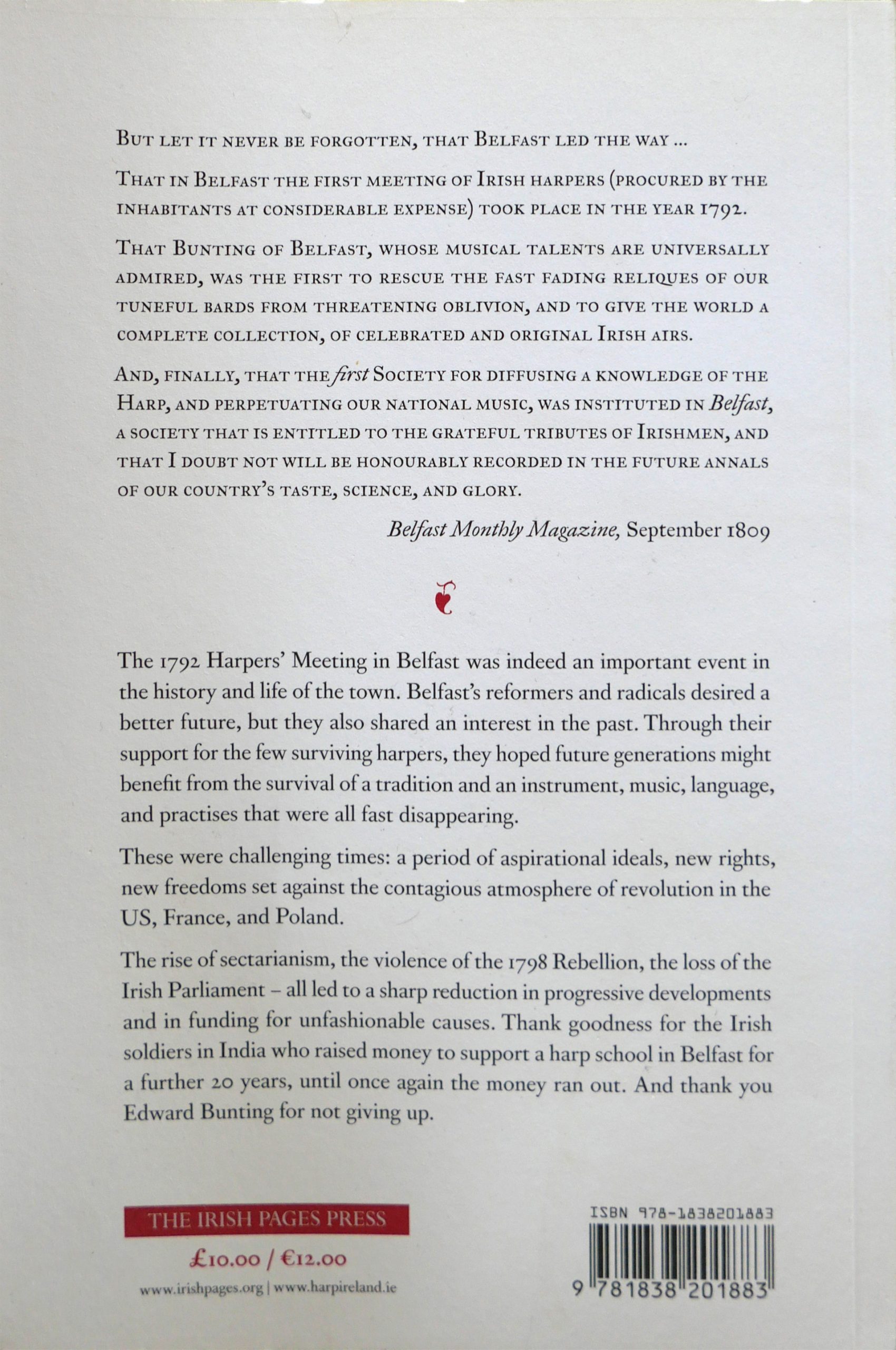 The 1792 Harpers’ Assembly in Belfast was an important event in the history and life of the town. Belfast’s reformers and radicals shared an interest in the past. Read David Byers’ fascinating account of their support for the surviving Irish harpers and how through the work of Edward Bunting, they succeeded in preserving the ancient harping tradition, its music and practices that were fast disappearing. Commissioned by Cruit Éireann|Harp Ireland and Reclaim the Enlightenment for the inaugural Harps Alive | An Chruit Bheo | Harps Leevin festival in 2022.