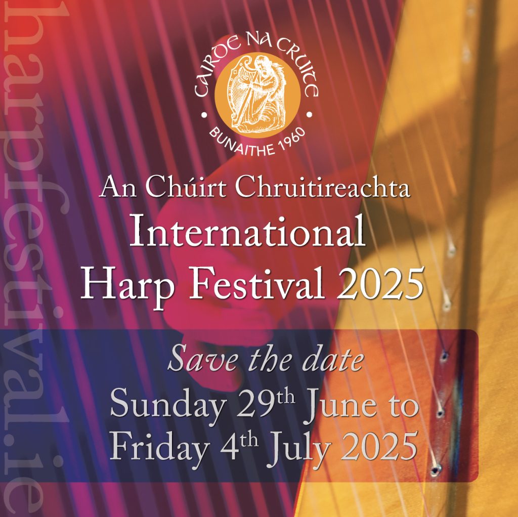 Cruit Éireann | Harp Ireland, in partnership with Cairde na Cruite, is pleased to sponsor two harpers a grant of €200 each towards An Chúirt Chruitireachta, the International Festival for Irish Harp in An Grianán, Termonfechin, Co Louth between 29th June and 4th July 2025. This five-day annual harp festival provides a unique opportunity for harpers to gain expert tuition from a range of internationally renowned harpers, immerse themselves within the tradition and meet and socialise with other harpers.