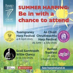 During this week, harpers will be exposed to the finest harp teachers, traditional musicians, recitals and concerts, making for an immersive learning experience. “The harp recital at the summer school has become a major attraction for the general public and is now considered one of the highlights of the week’s programme of events, while the number of students participating has grown steadily since we began in 2007” said Harry Hughes, Scoil Samhraidh Willie Clancy Director. “We are very happy to support the attendance of Irish harpers and to acknowledge the very positive work being done by both organisations”.