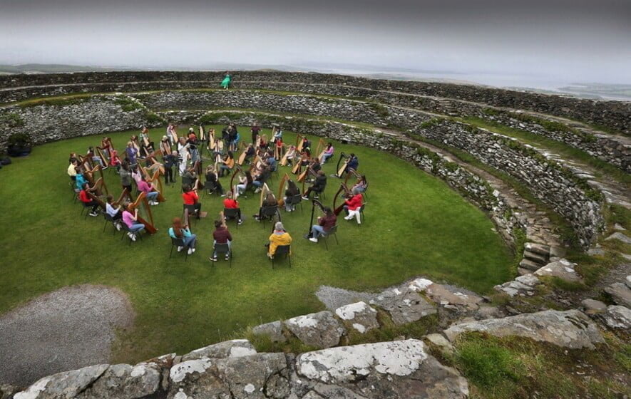 The Cruinniú na gCruitirí (Harpers’ Gathering) was brought together by Cruit Éireann (Harp Ireland) along with renowned Inishowen musician, Clodagh Warnock. The recitals also featured guest performances from Triona Marshall, harper with the legendary The Chieftains as well as Donegal musician and composer, Martin Tourish. One of the royal sites of Gaelic Ireland, Grianán of Aileach is a ringfort overlooking Lough Swilly and Lough Foyle.