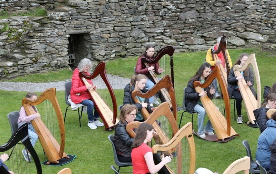Harpers from across Ulster as well as County Louth gathered at the ancient Celtic hill fort of Grianán of Aileach in Inishowen to promote this year’s Irish Harp Day.